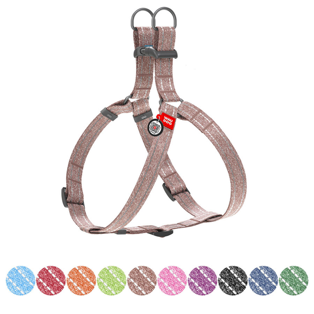 Шлей з відновленої бавовни WAUDOG Re-cotton Світловідбивна пластикова фастекс S Ш 15 мм Дл 40-55 см Коричневий