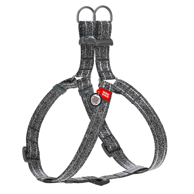 Шлей для собак з ручкою з відновленої бавовни анатомічна Н-подібна WAUDOG Re-cotton з QR паспортом світловідбивна пластикови