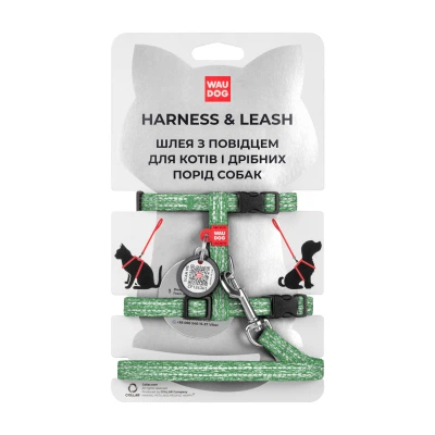 Шлея для котів WAUDOG Re-cotton з повідком пластиковий фастекс XS зелена (147018)