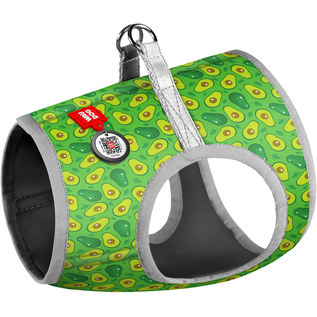 Шлея для собак м’яка WAUDOG Clothes з QR паспортом, малюнок "Авокадо", розмір XS2 (2947)