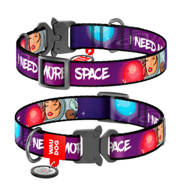 Нашийник для тварин WAUDOG Nylon з QR-паспортом "Більше космосу" металева пряжка-фастекс XL (4508-0126)