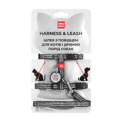 Шлея для котів WAUDOG Re-cotton з повідком пластиковий фастекс XS сіра (147011)