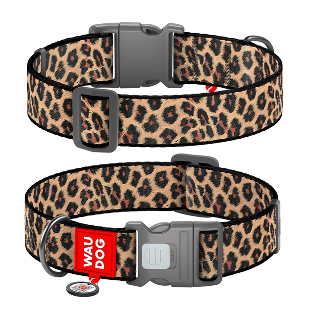 Нашийник для собак WAUDOG нейлоновий Nylon c QR паспортом, малюнок Леопард, пластиковий фастекс, XXL, Ш 35 мм, Д 46-70 см