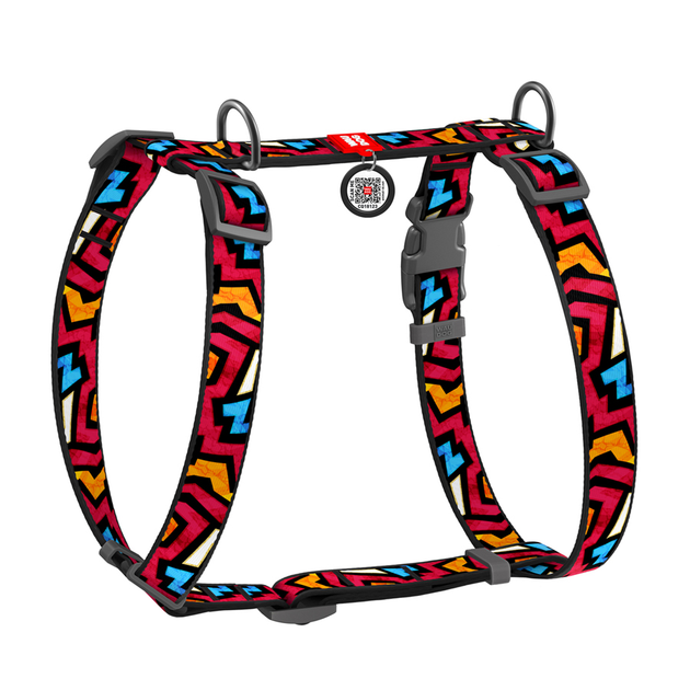 Анатомічна H-подібна шлея для собак WAUDOG Nylon з QR-паспортом малюнок Графіті пластиковий фастекс S Ш 15 мм A 30-40 B 30-5