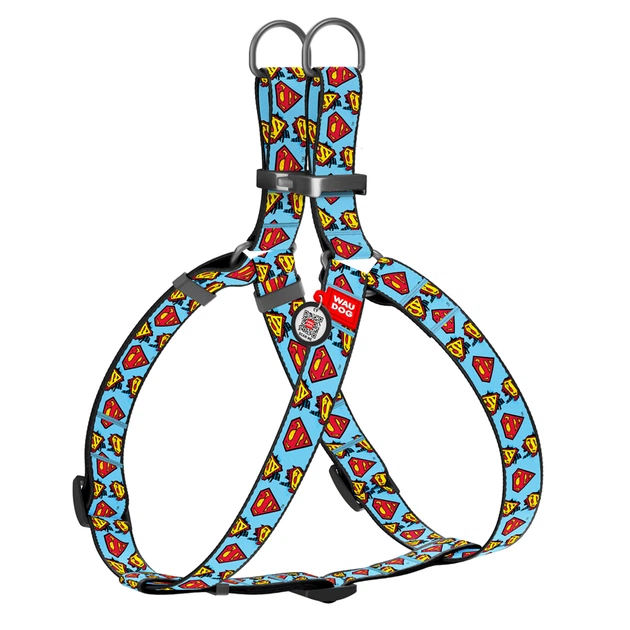 Шлея для собак м'яка WAUDOG Clothes з QR паспортом, малюнок "Сила Супермена", XS2, В 28-31 см, С 20-22 см