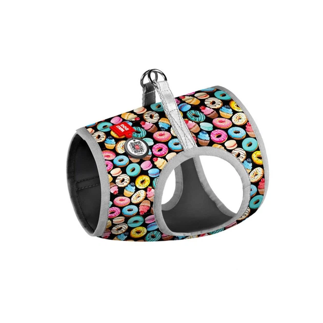 Шлея для собак м'яка WAUDOG Clothes з QR паспортом, малюнок "Пончики", XS3, В 32-35 см, С 22-24 см