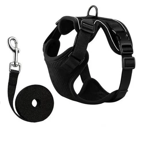 Шлейка для собак та кішок Purlov Guard S без тиску зі світловідбивачами та повідцем 150 см