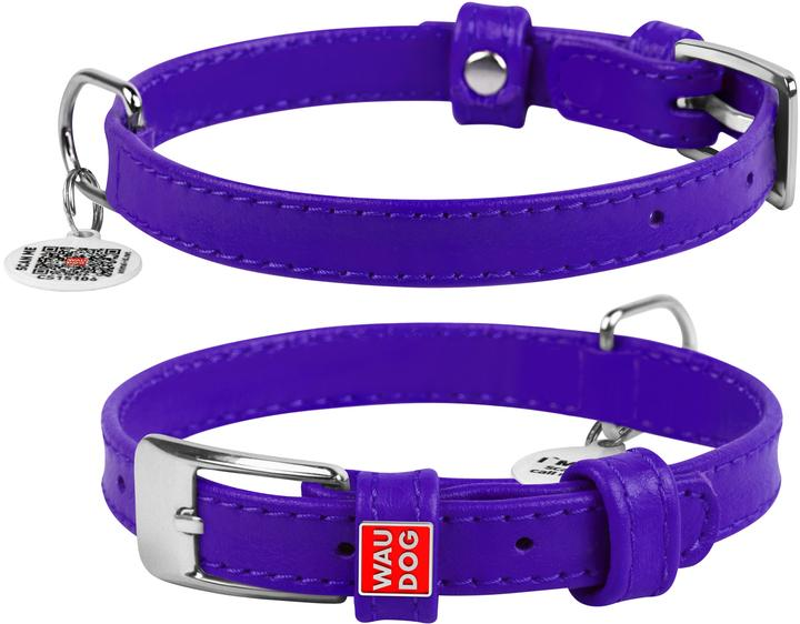 Ошейник для собак WAUDOG шкіра з QR паспортом, розмір S Ш 15 мм Дов 27-36 см Фіолетовий (4820152560810)
