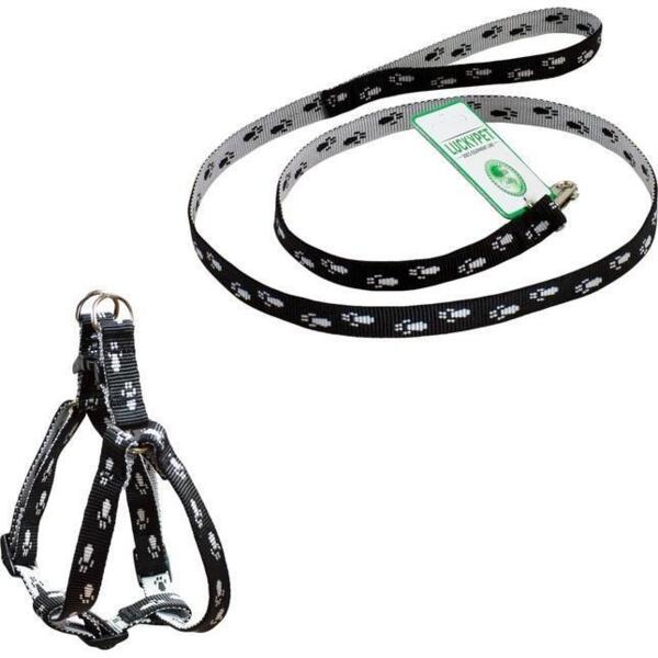 Комплект Lucky Pet повідець+шлея капроновий Лапки чорно-сірий 10мм/24-28см/38-46см 4820224219547