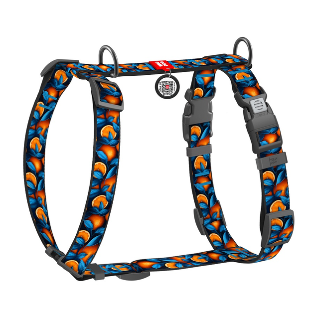 Шлей для собак анатомічний H-подібний WAUDOG Nylon з QR-паспортом, малюнок "Апельсини", пластиковий фастекс, S, Ш 15 мм, A 3