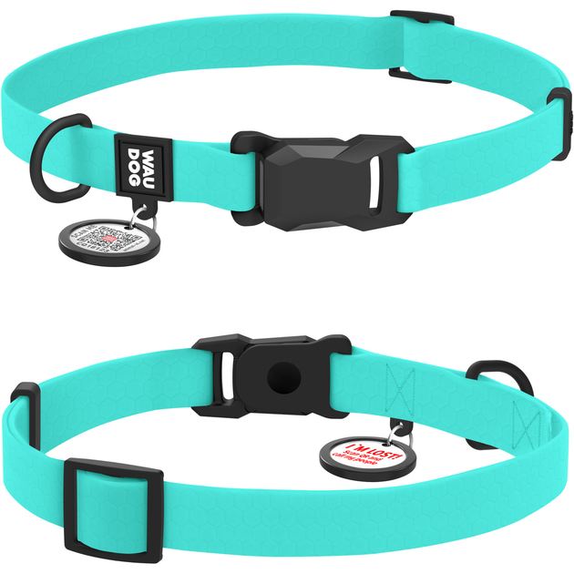 Нашийник для собак водостійкий WAUDOG Magnet з QR паспортом, магнітна пряжка-фастекс, тіффані, розмір S