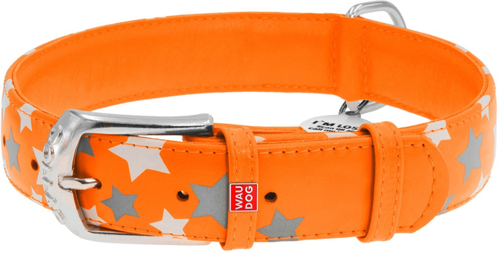 Нашийник для собак шкіряний WAUDOG Glamour з QR паспортом візерунок "Зірочка" світлонакопичувальний/світловідбивний L Ш 25 м
