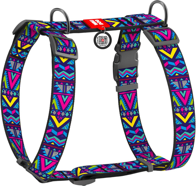 Шлея для собак анатомічна H-подібна WAUDOG Nylon з QR-паспортом, малюнок "Інді", пластиковий фастекс, XL, Ш 35 мм, А 55-95 с