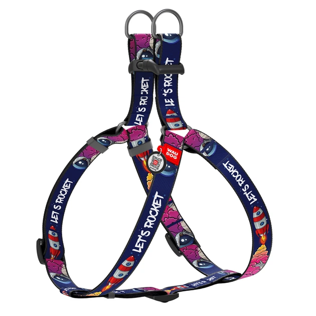 Шлей для собак нейлонова WAUDOG Nylon Космос. Ракета пластикова фастекс L Ш 25 мм Дл 60-90 см