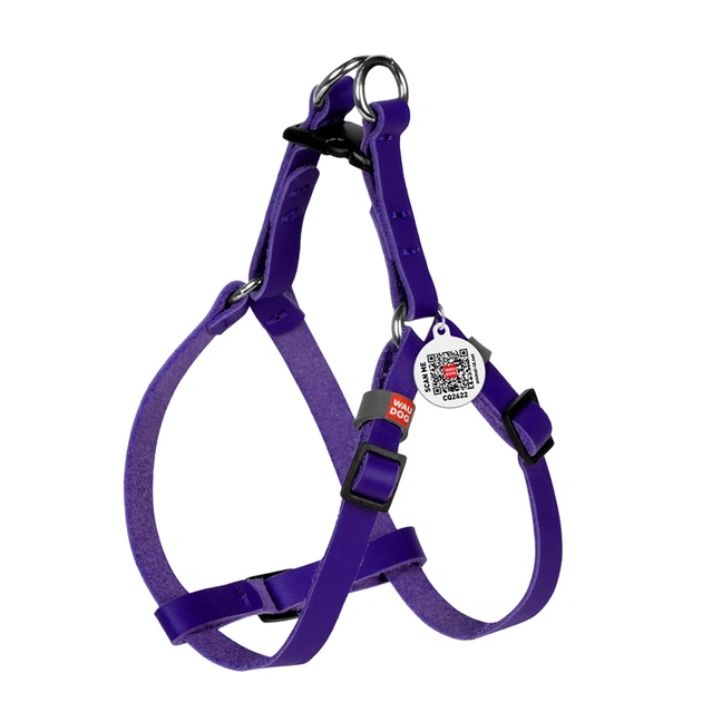 Шлея котів та дрібних собак шкіряна WAUDOG Classic з QR паспортом, пластиковий фастекс, розмір XS, 28-40 см 10 мм Фіолетова