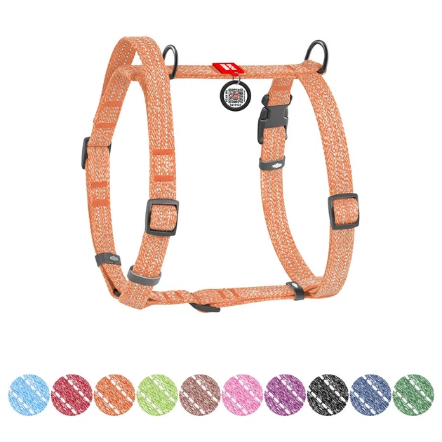 Шлей для собак з ручкою з відновленої бавовни анатомічна Н-подібна WAUDOG Re-cotton з QR паспортом світловідбивна пластикови