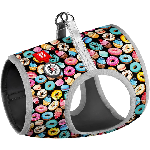 Шлея для собак м’яка WAUDOG Clothes з QR паспортом, малюнок "Пончики", розмір XS4 (2910)
