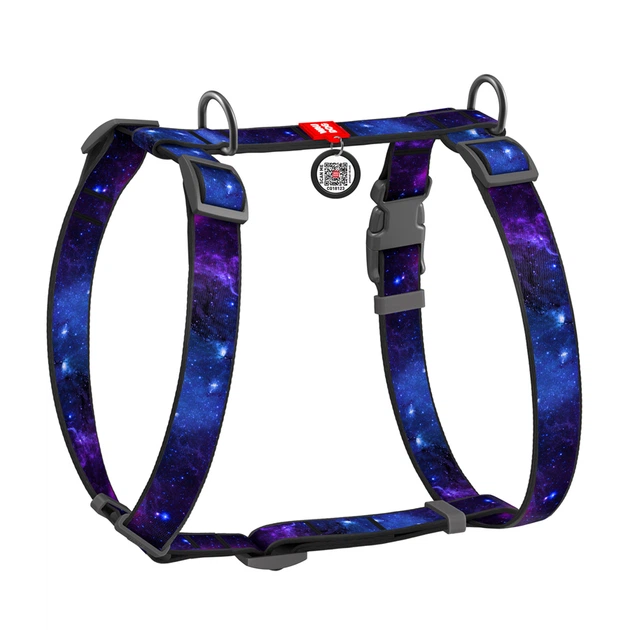 Шлей для собак анатомічний H-подібний WAUDOG Nylon з QR-паспортом малюнок "NASA21" пластиковий фастекс L Ш 25 мм А 50-90 см