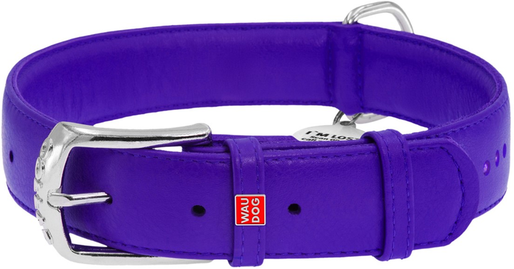 Нашийник для собак шкіряний WAUDOG Glamour з QR паспортом подвійний зі стразами M Ш 20 мм Дов 30-39 см Фіолетовий (482308931