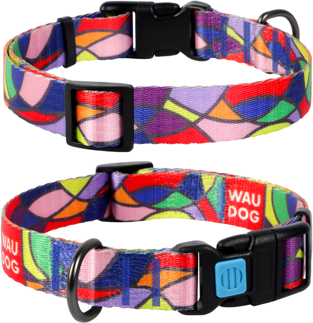 Нашийник для собак нейлоновий WAUDOG Nylon з QR паспортом малюнок "Вітраж" пластиковий фастекс Ш 25 мм Дов 37-58 см (4581Col