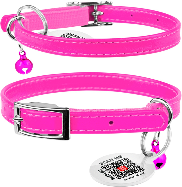 Нашийник для котів, шкіряний WAUDOG Glamour із QR-паспортом, без оздоблень, XXS, ширина 9 мм, довжина 22-30 см, рожевий (324