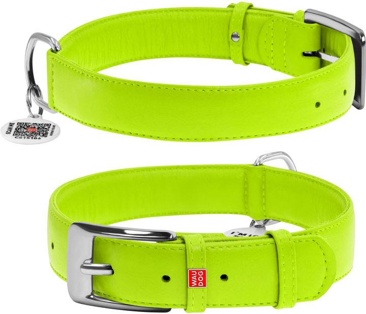 Нашийник для собак шкіряний WAUDOG Glamour з QR паспортом без прикрас XL ширина 35 мм довжина 46-60 см Салатовий (33225)