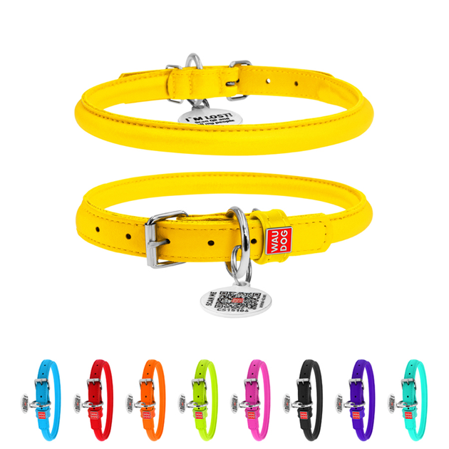 Нашийник для собак шкіряний WAUDOG Glamour з QR паспортом, круглий, Д 13 мм, Д 53-63 см, жовтий
