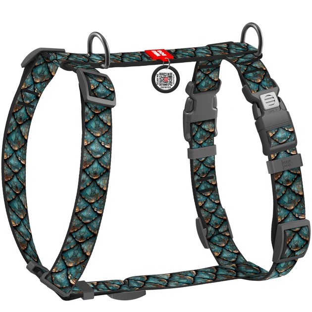 Шлей для собак анатомічний H-подібний WAUDOG Nylon з QR адресником, малюнок "Луска", пластиковий фастекс, L, Ш 25 мм, А 51-8