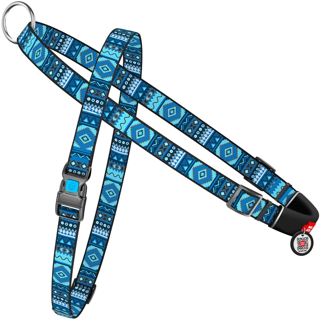 Шлея для собак швидкознімна WAUDOG Nylon з QR паспортом, малюнок "Етно синій", пластиковий фастекс, Ш 25 мм, А 60-80 см, В 7