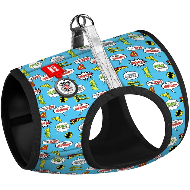 Шлея для собак м'яка WAUDOG Clothes з QR паспортом, малюнок "Чудо-жінка комікс", XS4,В 36-39 см, С 26-28 см