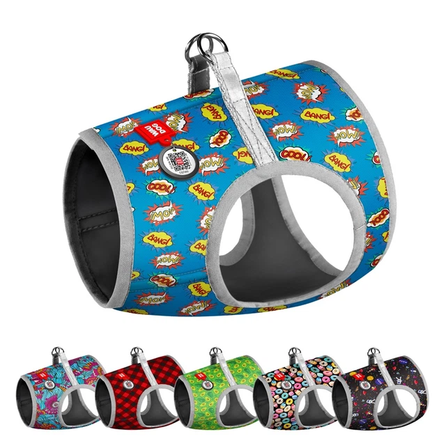 Шлей для собак м'який WAUDOG Clothes з QR паспортом малюнок "ВАУ" XS4 В 36-39 см С 26-28 см