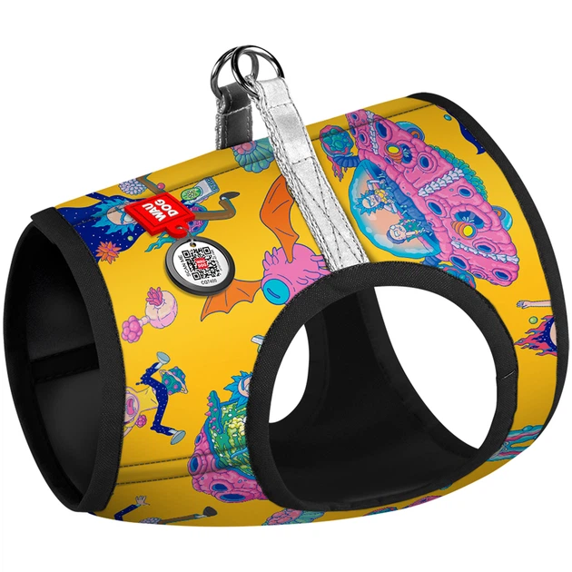 Шлея для собак м'яка WAUDOG Clothes з QR паспортом, малюнок "Рік та Морті 3", розмір S1 (2905-0282)