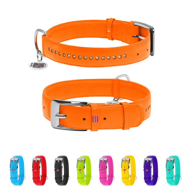 Ошейник для собак шкіряний WAUDOG Glamour з QR паспортом, подвійний зі стразами, S, Ш 15 мм, Дов 27-36 см помаранчевий