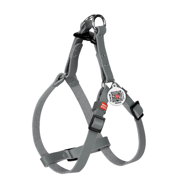 Шлея котів та дрібних собак шкіряна WAUDOG Classic з QR паспортом, пластиковий фастекс, розмір XS, 28-40 см 10 мм Сіра (6010