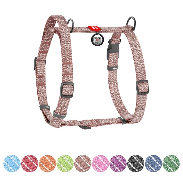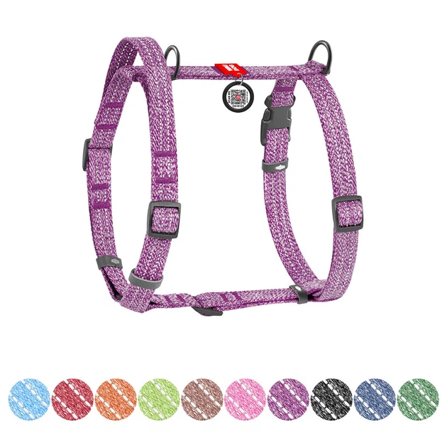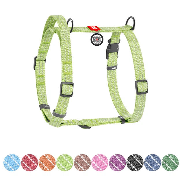 Шлей для собак з ручкою з відновлення бавовни анатомічна Н-подібна WAUDOG Re-cotton з QR-паспортом, світловідбивна, пластико