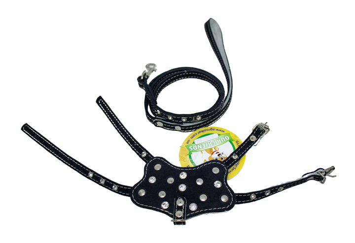 Комплект подвійний для декоративних порід собак прикрашений стразами 025 ВЕЛЮР: шлейка 815 + повід 793