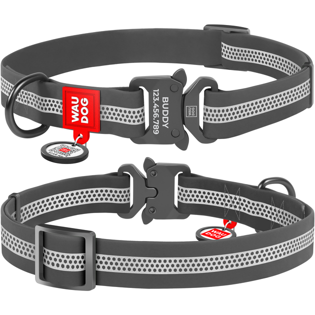 Нашийник для собак водостійкий WAUDOG Waterproof з QR паспортом, світловідбивний, металева пряжка-фастекс, розмір M, 28-40 с