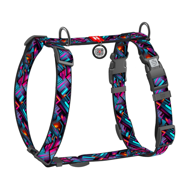 Шлей для собак анатомічний H-подібний WAUDOG Nylon з QR-паспортом, малюнок "Нескінченні світи", пластиковий фастекс, S, Ш 15