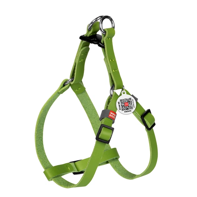 Шлей для котів та дрібних собак шкіряна WAUDOG Classic з QR паспортом пластиковий фастекс XS Ш 10 мм В=С 28-40 см салатовий