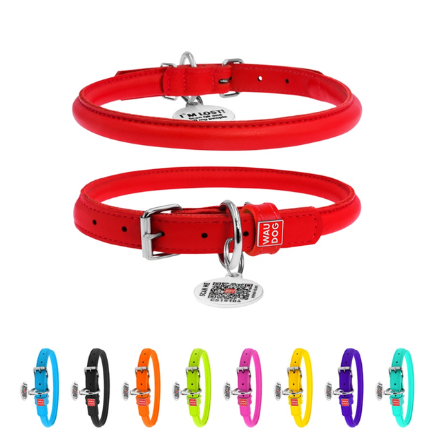 Ошейник для собак шкіряний WAUDOG Glamour з QR паспортом, круглий, Д 13 мм, Дов 45-53 см червоний