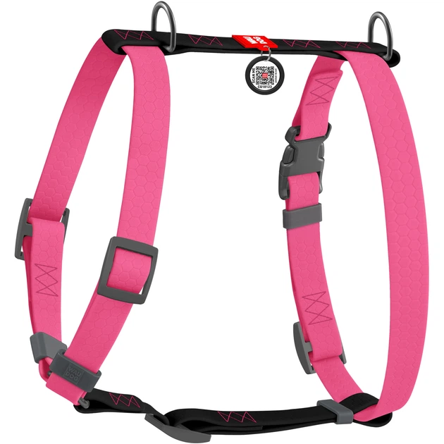 Шлея для собак водостійка анатомічна Н-подібна WAUDOG Waterproof з QR паспортом, рожево-чорна, розмір S