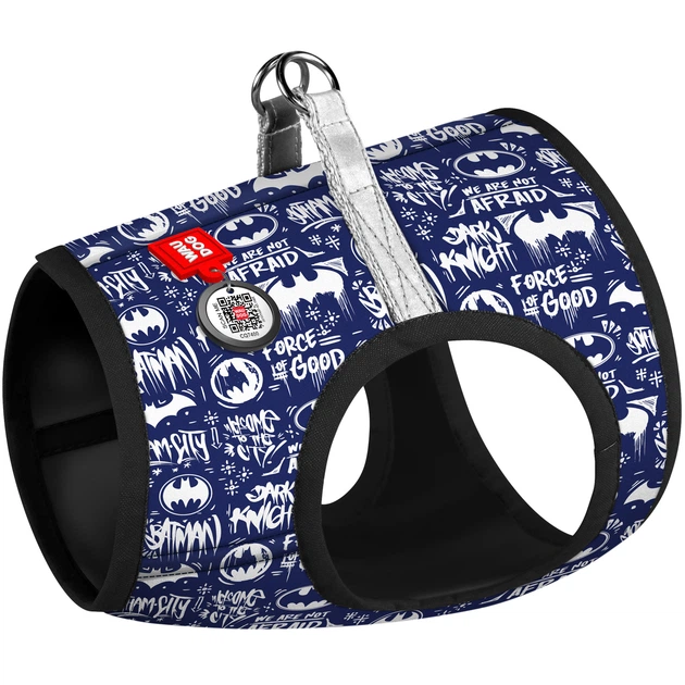 М'який нейлоновий шлей для собак WAUDOG з QR паспортом, з малюнком "Бетмен біло-блакитний", розмір XS4 (1004-4001)