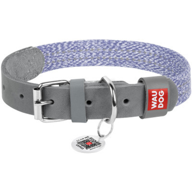 Нашийник для собак зі шкіри та відновленої бавовни WAUDOG Classic L Ш 25 мм Д 38-49 см Grey (589311)