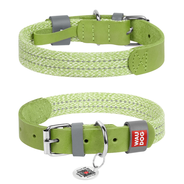 Нашийник для собак зі шкіри та відновленої бавовни WAUDOG Classic L Ш 25 мм Д 38-49 см Green (58935)