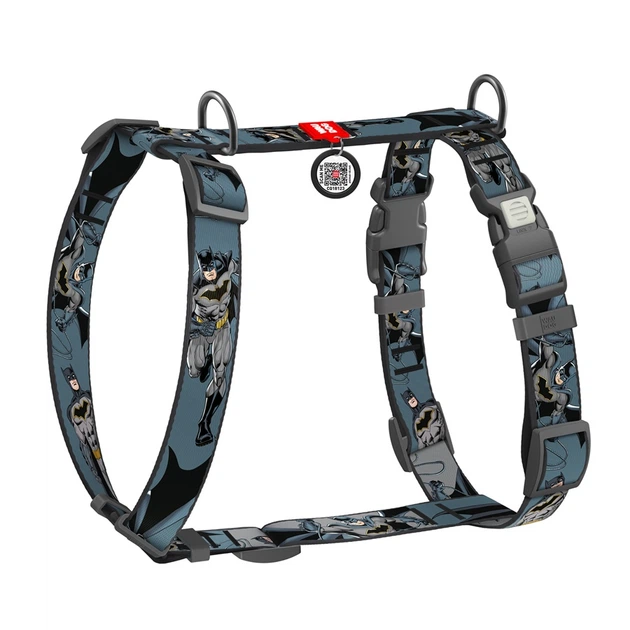 Шлей для собак м'який WAUDOG Clothes з QR паспортом малюнок "Бетмен вінтаж" S2 В 46-50 см С 43-45 см