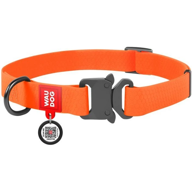 Нашийник для тварин WAUDOG Waterproof з QR паспортом L Ш 25 мм Д 31-49 см(помаранчевий) (27864)