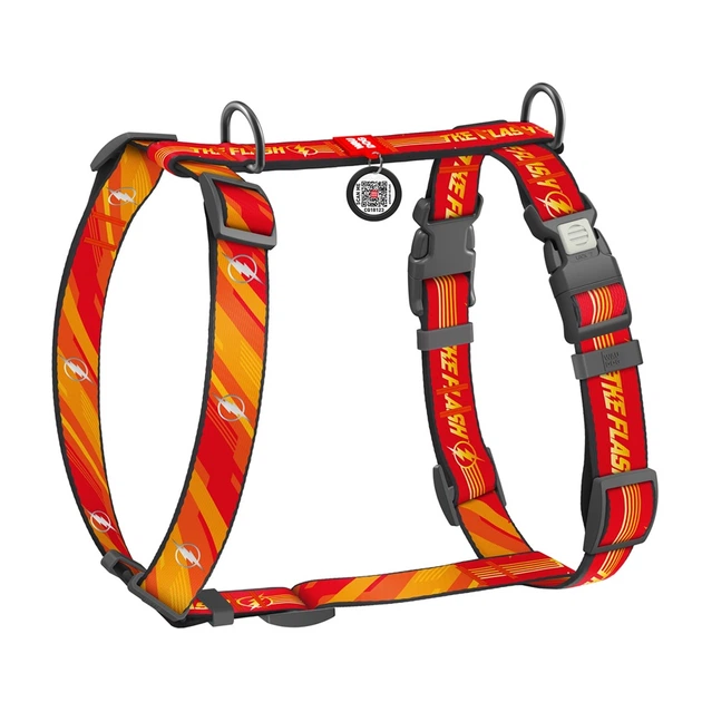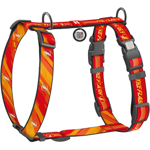 Шлея для собак анатомічна H-подібна WAUDOG Nylon з QR-паспортом, світловідбивна, малюнок "Флеш Лого", пластиковий фастекс, р