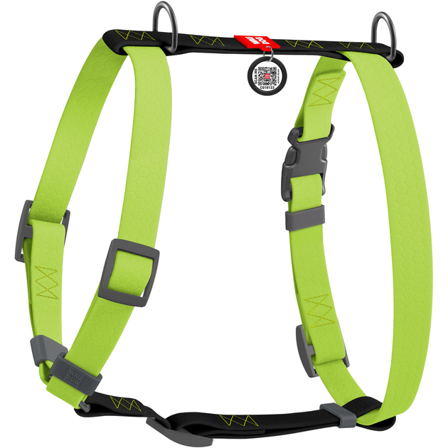 Шлея для собак водостійка анатомічна Н-подібна WAUDOG Waterproof з QR паспортом, салатово-чорна, розмір S