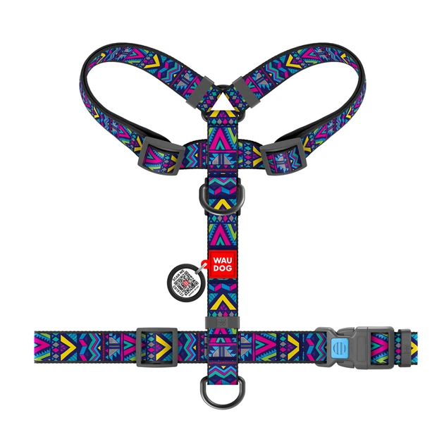 Шлея для собак анатомічна H-подібна WAUDOG Nylon з QR-паспортом, малюнок "Інді", пластиковий фастекс, L, Ш 25 мм, А 50-90, В