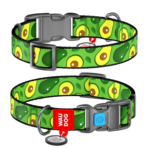 Нашийник для собак нейлоновий Collar WAUDOG Nylon з QR паспортом, малюнок "Авокадо", пластиковий фастекс, XS, Ш 10 мм, Дов 2
